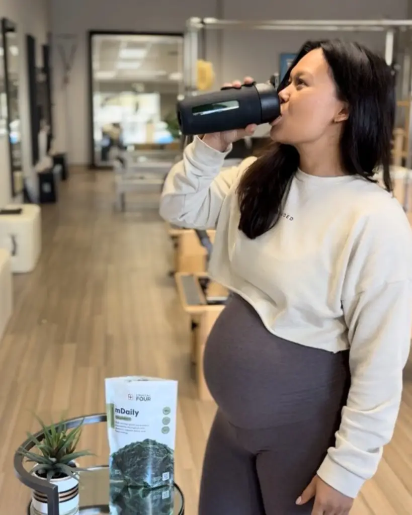 Start of team meetings with 32 oz of mDaily Greens—I swear by this product. It carried me through pregnancy when I didn’t have an appetite. It kept me energized and nourished when food didn’t sound good. If you’re expecting or planning to be, this is a must.